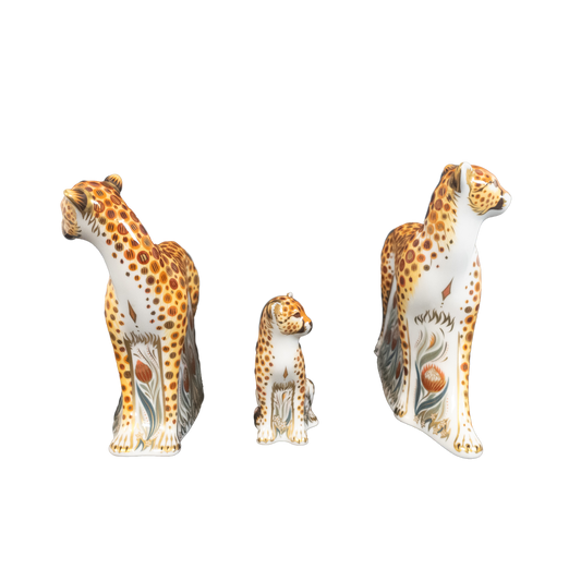 Royal Crown Derby Leopardess and Cub Family Paperweights