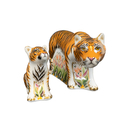Royal Crown Derby Sumatran Tiger Mother and Cub Paperweights