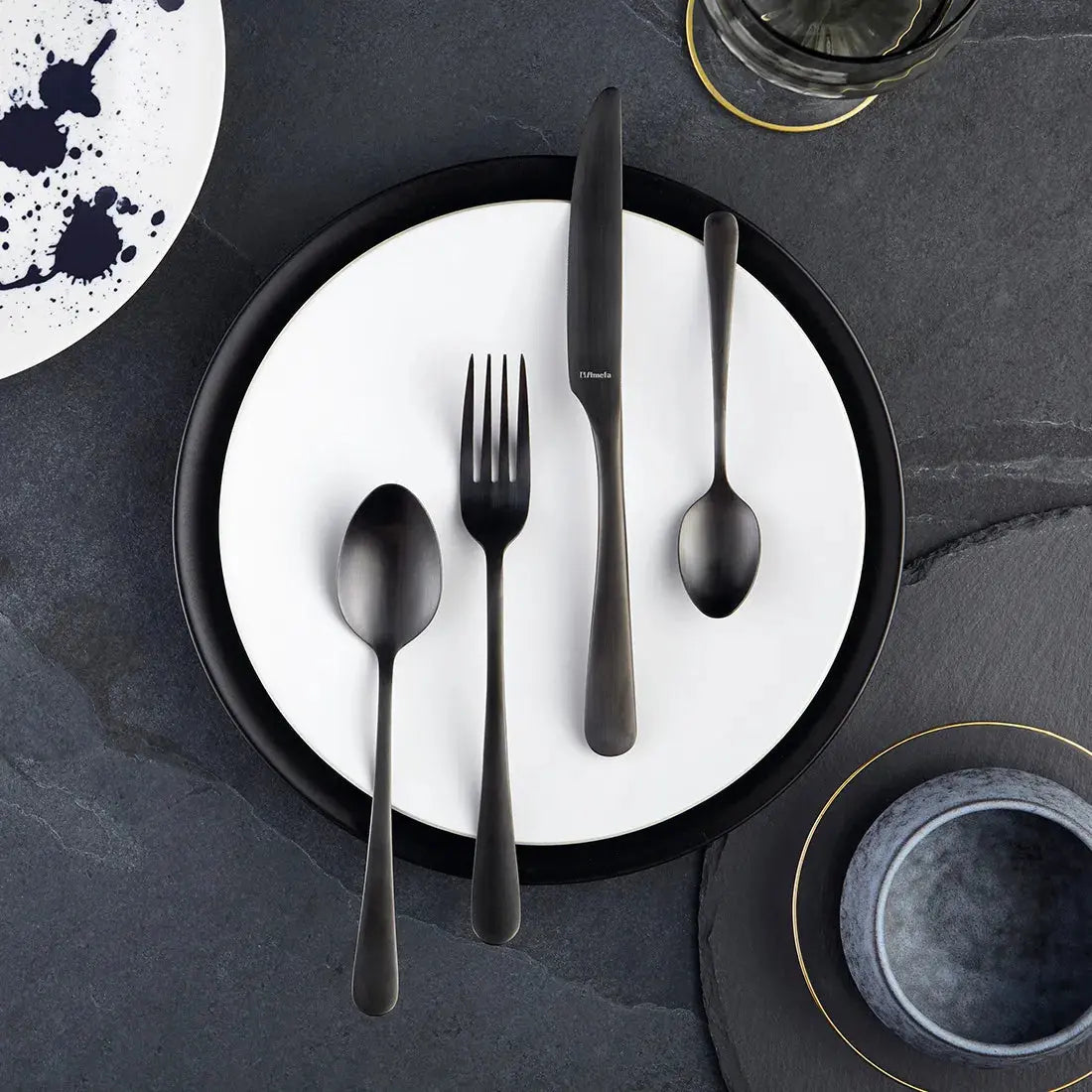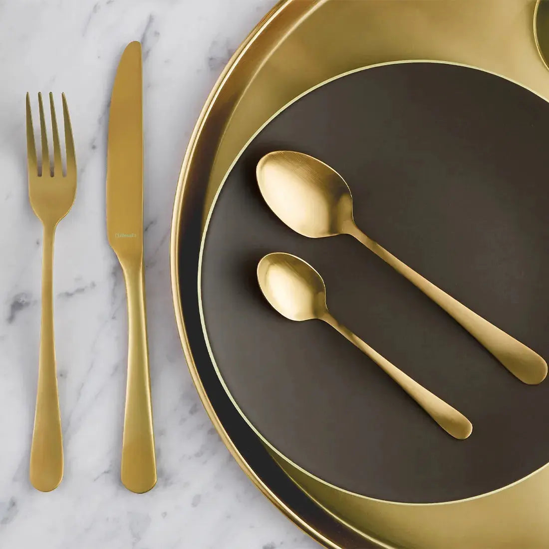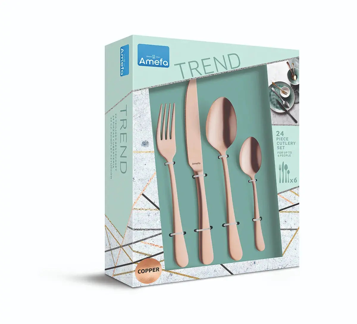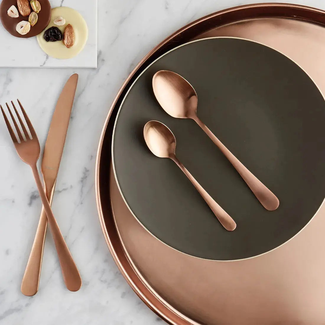 Elevate your dining experience with the Austin 24 pc Cutlery Set, crafted from durable 18/0 stainless steel and finished with a sleek MATT PVD coating. Available in gold, black, copper, and champagne, this set adds a modern, stylish touch to your table.