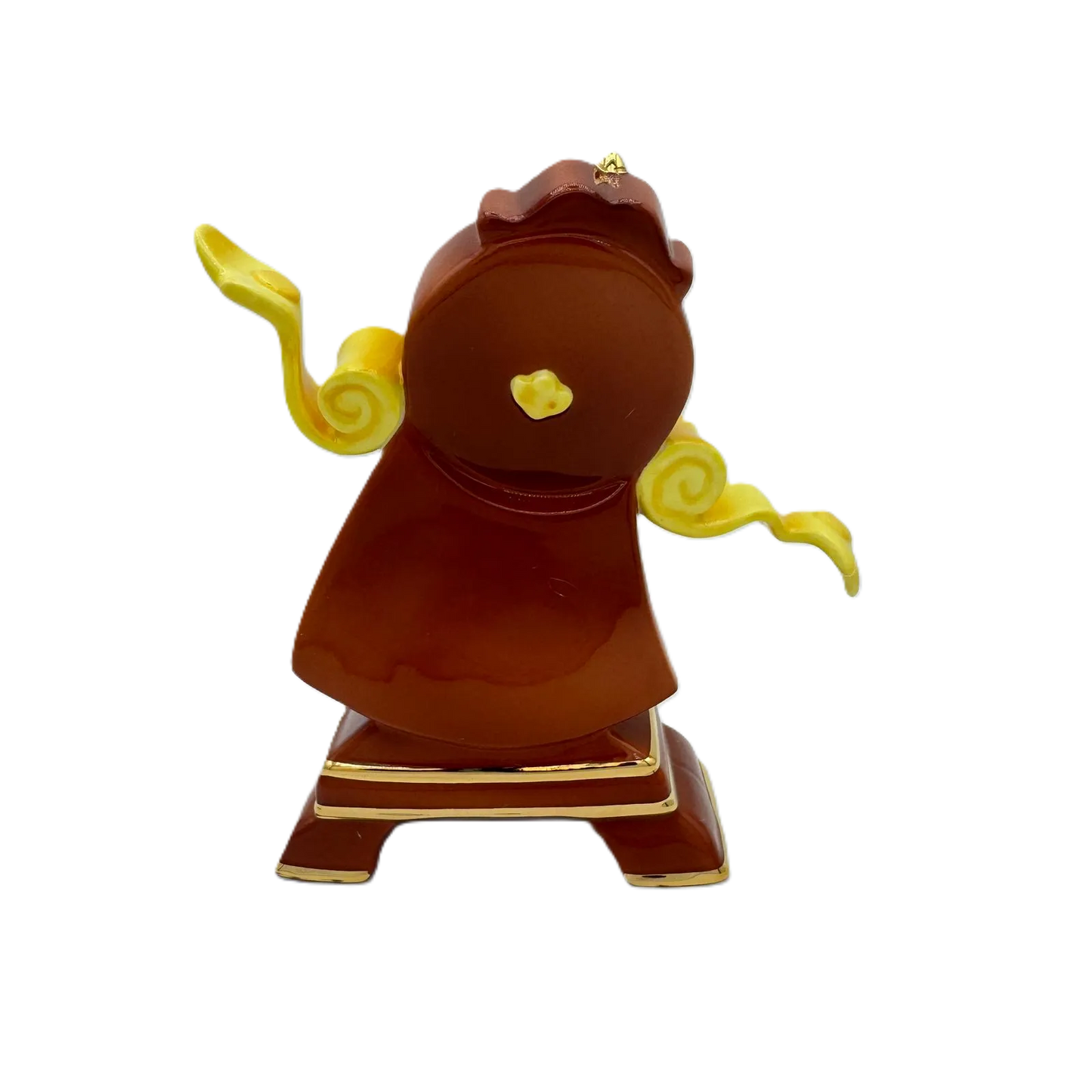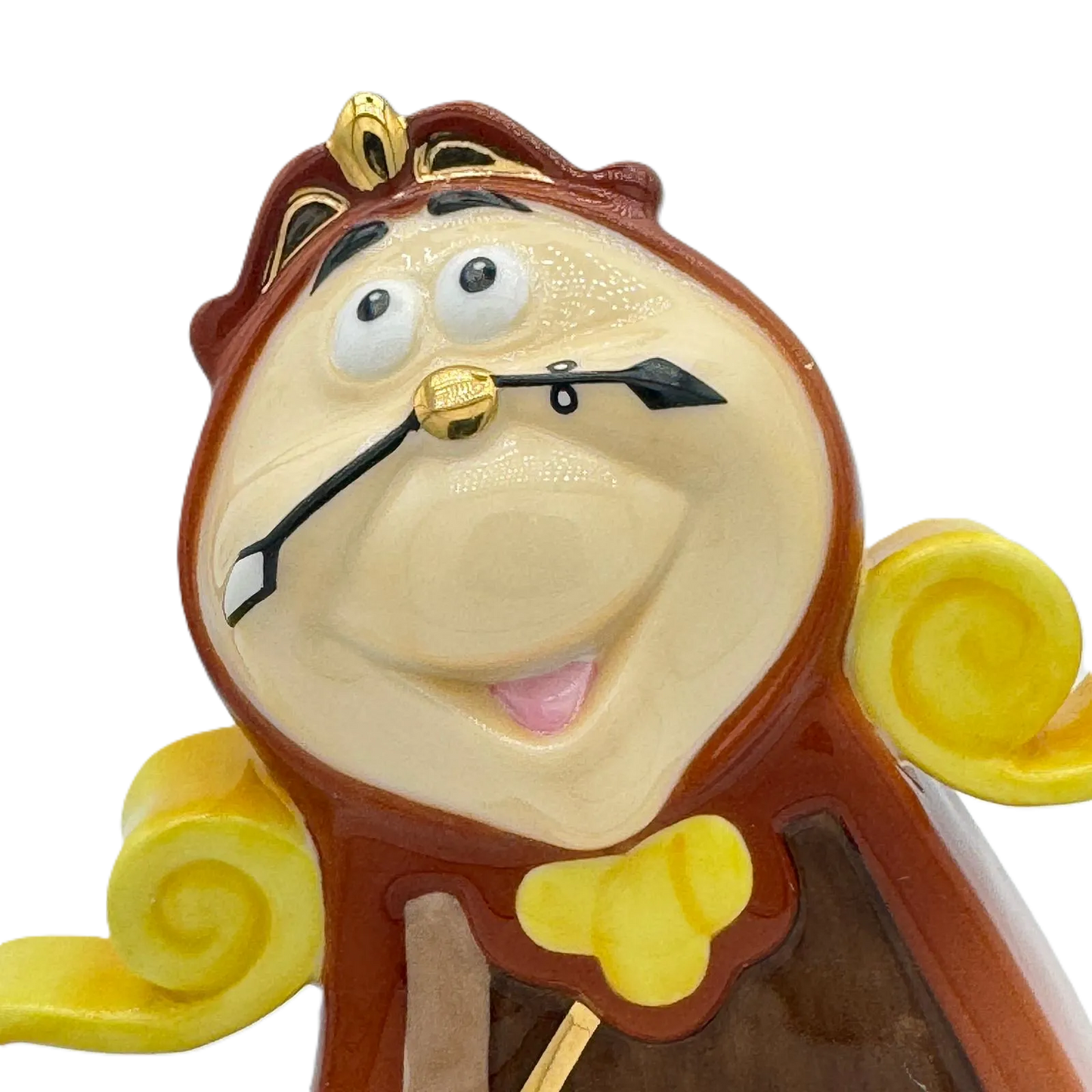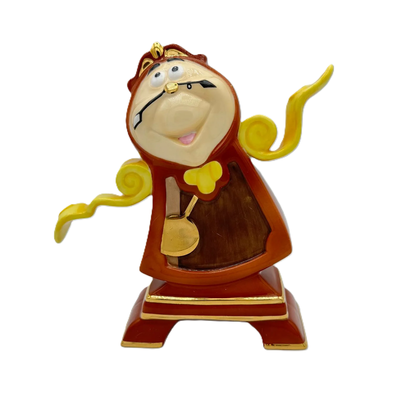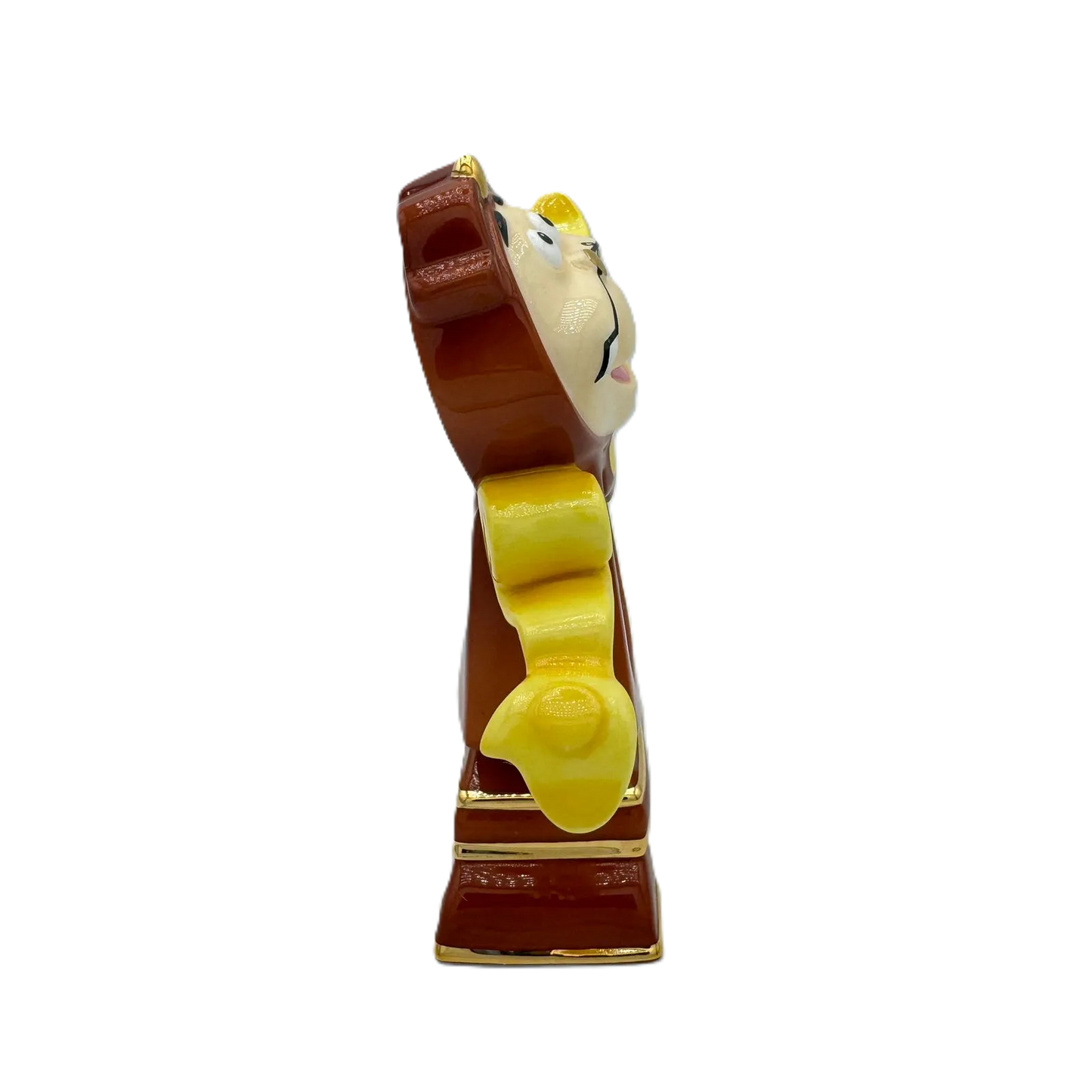 Handcrafted from fine porcelain, this figurine captures Cogsworth's unique personality, from his stern yet endearing expression to the intricate details of his clockwork design. His regal, golden accents and soft, rich colours reflect his dignified role in the story, while his comical posture adds a playful touch.