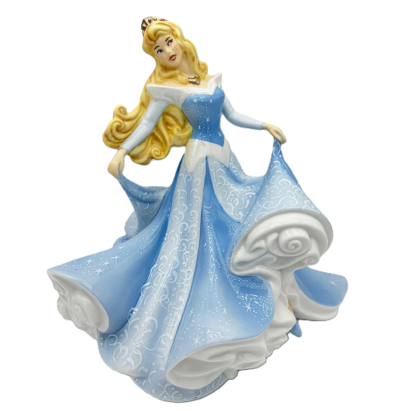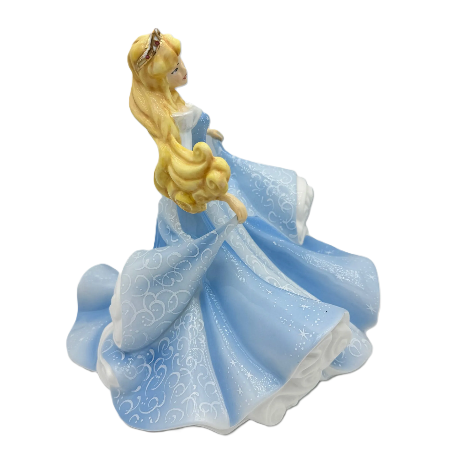Experience the romance and magic of Disney's Sleeping Beauty with the Aurora Blue Figurine. This exquisite handmade and hand-decorated bone china figurine captures the timeless elegance of Princess Aurora in her iconic blue gown, bringing the enchanting story of Sleeping Beauty to life.