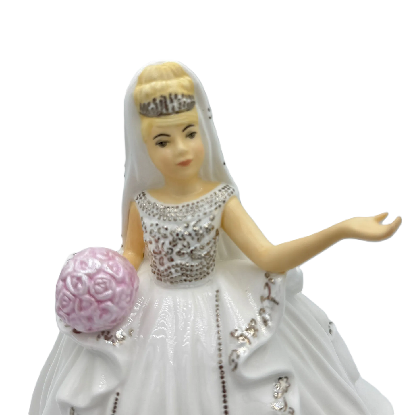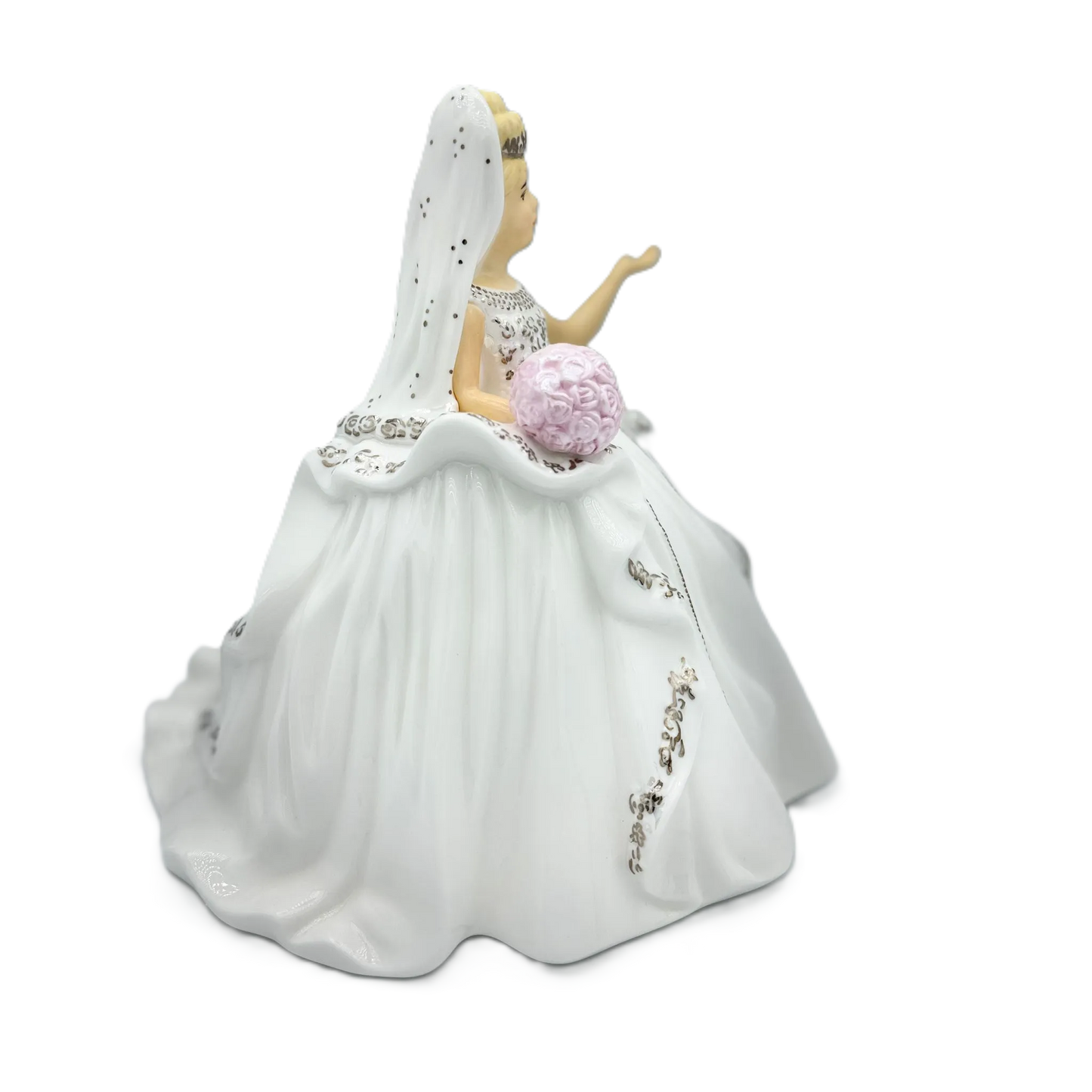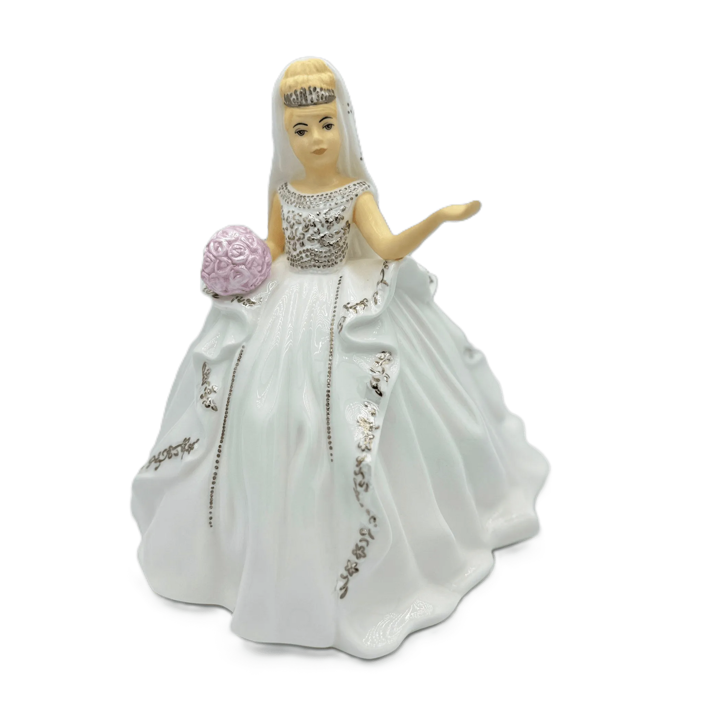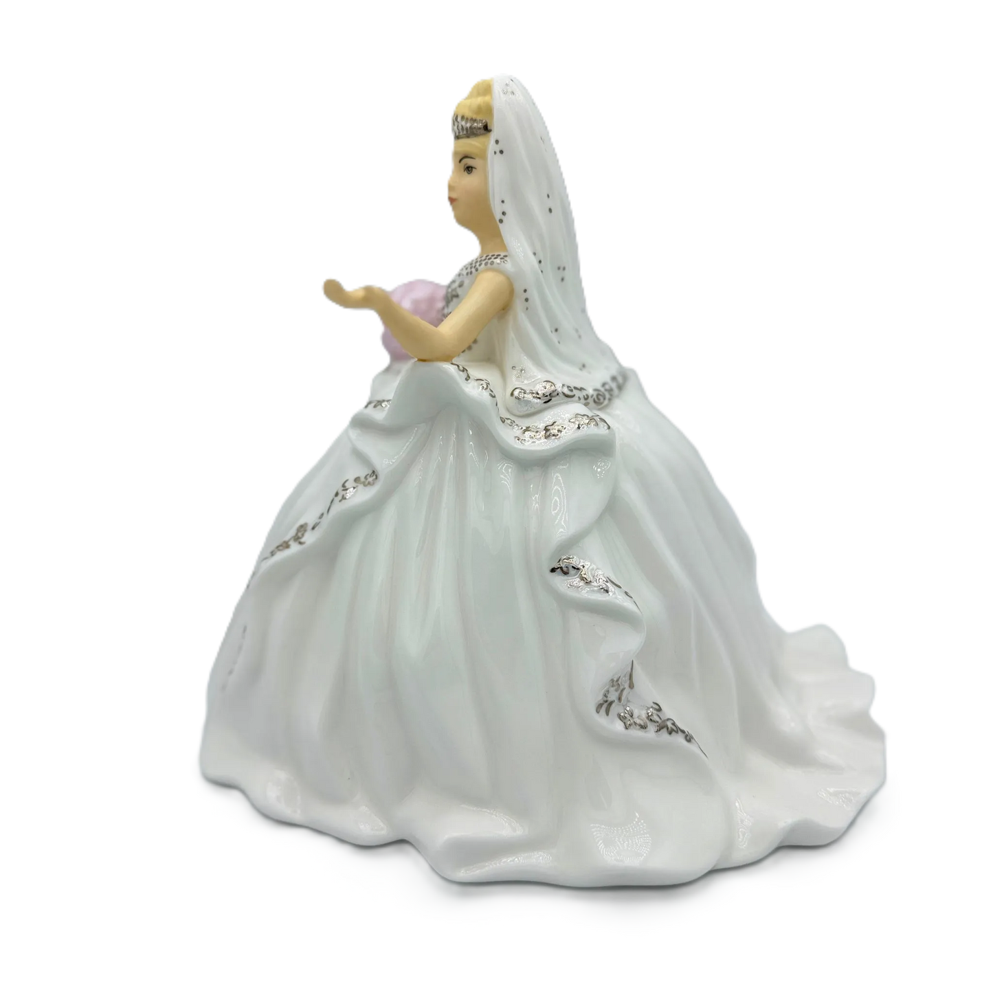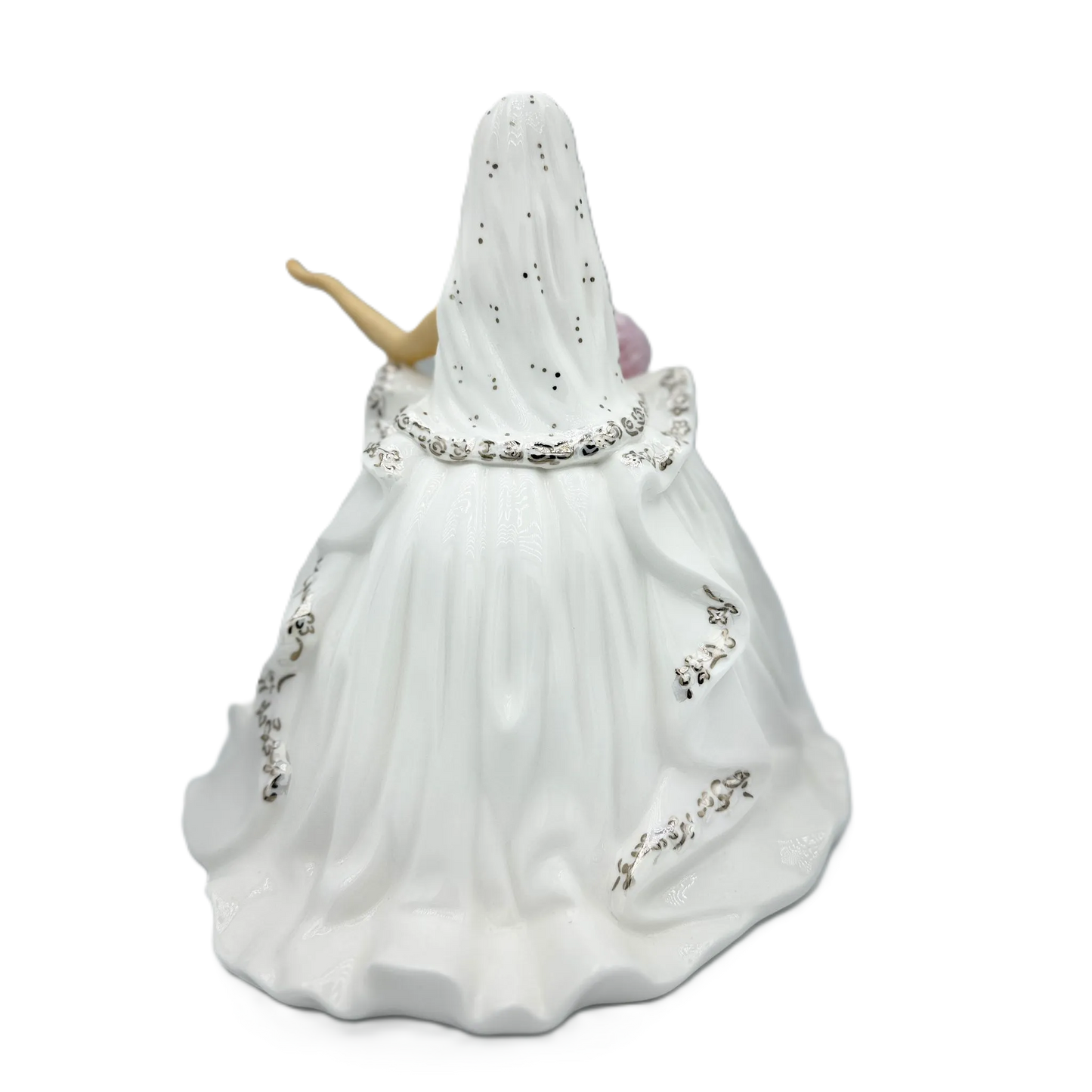 Crafted from the finest bone china, this figurine is meticulously hand-painted, with attention to every detail from the brides expressive face to the intricate textures of her gown. As part of a limited edition, it is individually numbered, ensuring its exclusivity and collectible appeal.