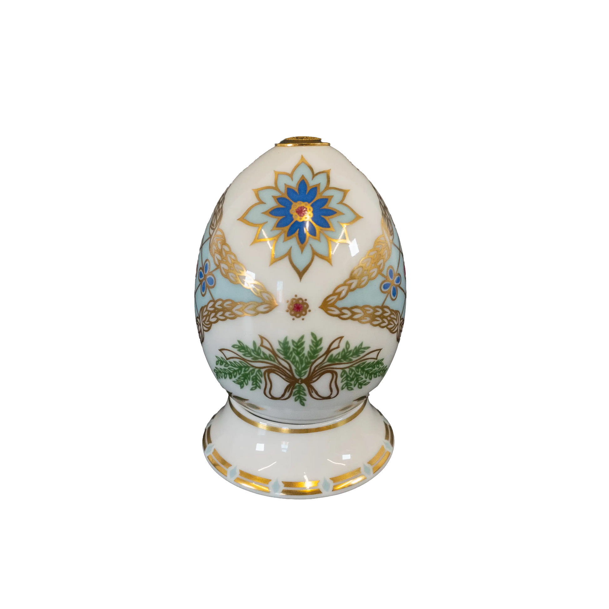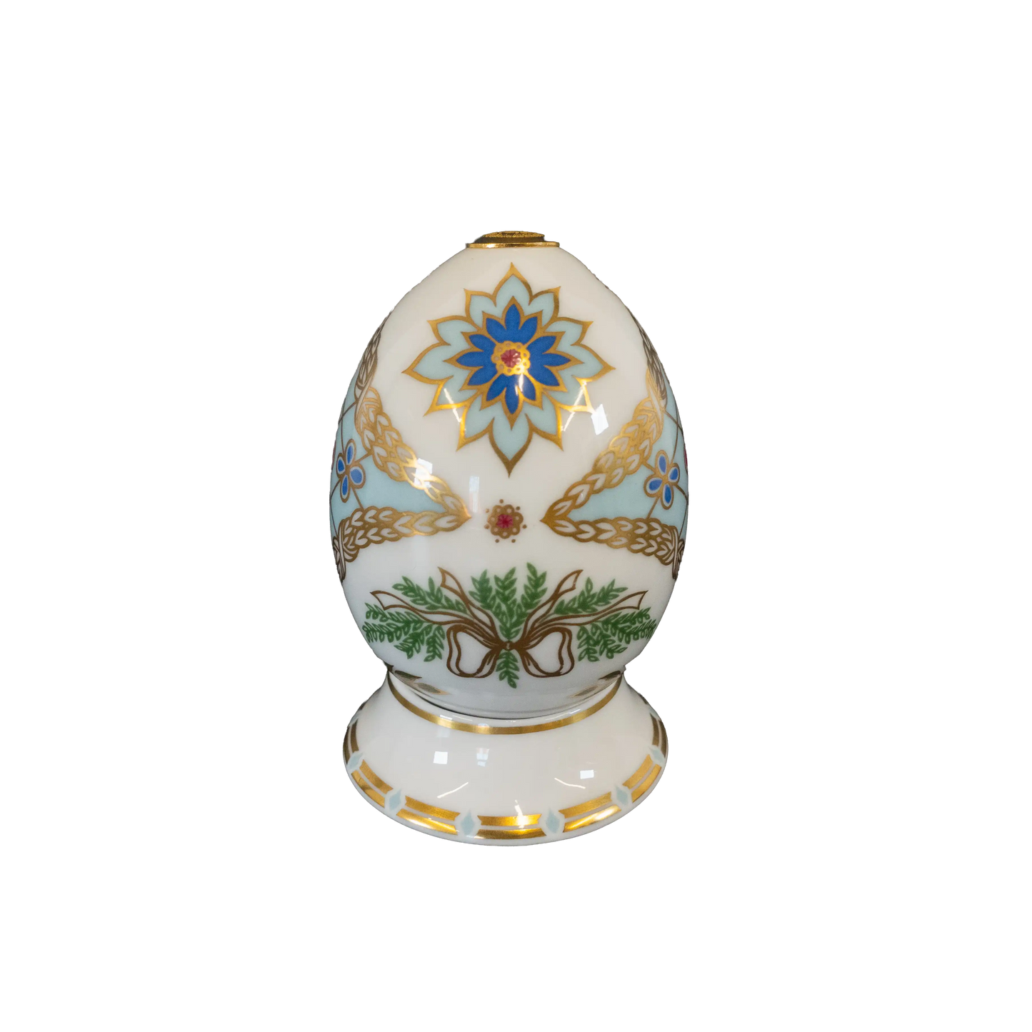 Each egg is crafted from fine bone china and finished in rich, vibrant colours with exquisite hand-applied 22ct gold. Moreover, its distinctive design captures the elegance and grandeur of Russian decorative arts.