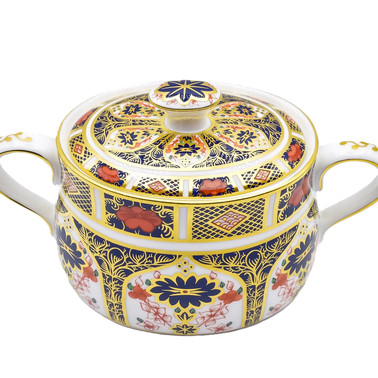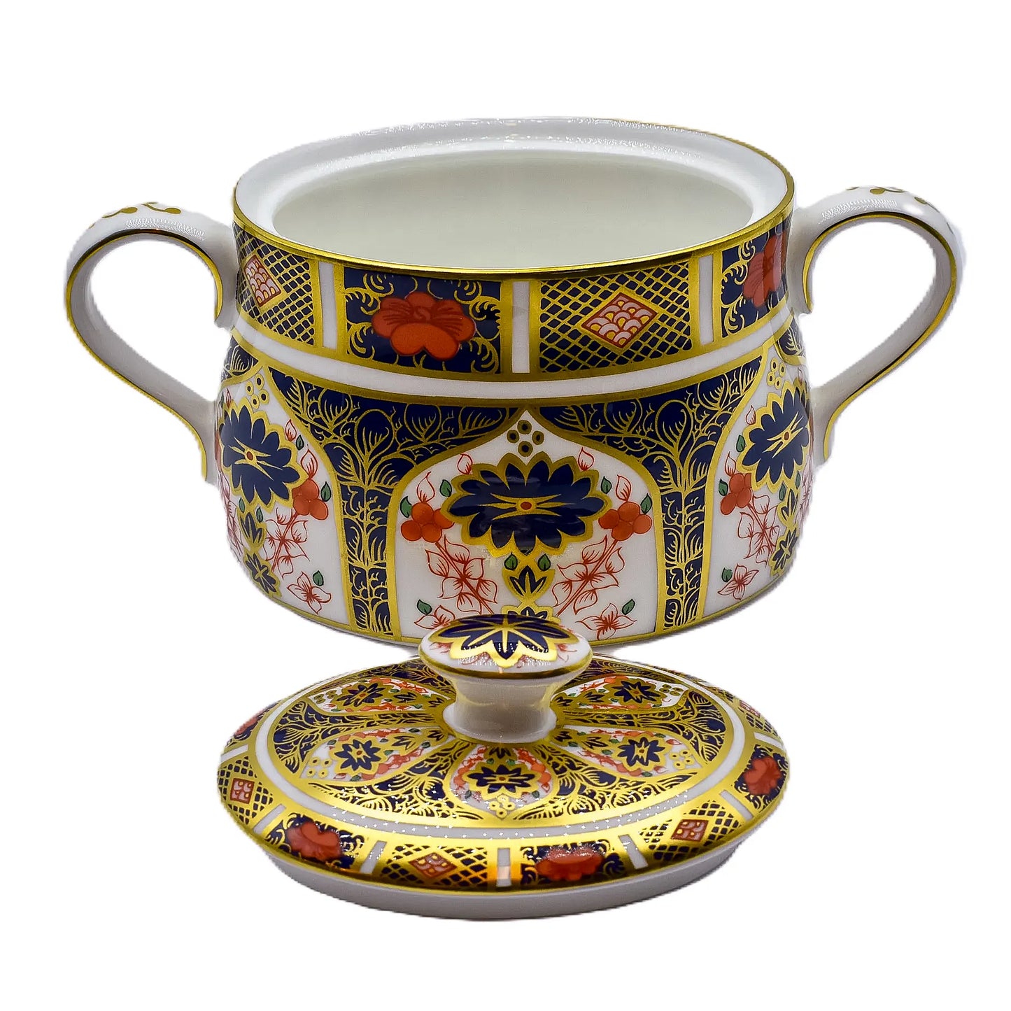 The ornate Old Imari pattern 1128 reflects Japanese and Oriental influences, offering an air of sophistication and elegance to both contemporary and traditional dining settings. The covered design not only enhances its aesthetic appeal but also ensures the freshness of your sugar.
