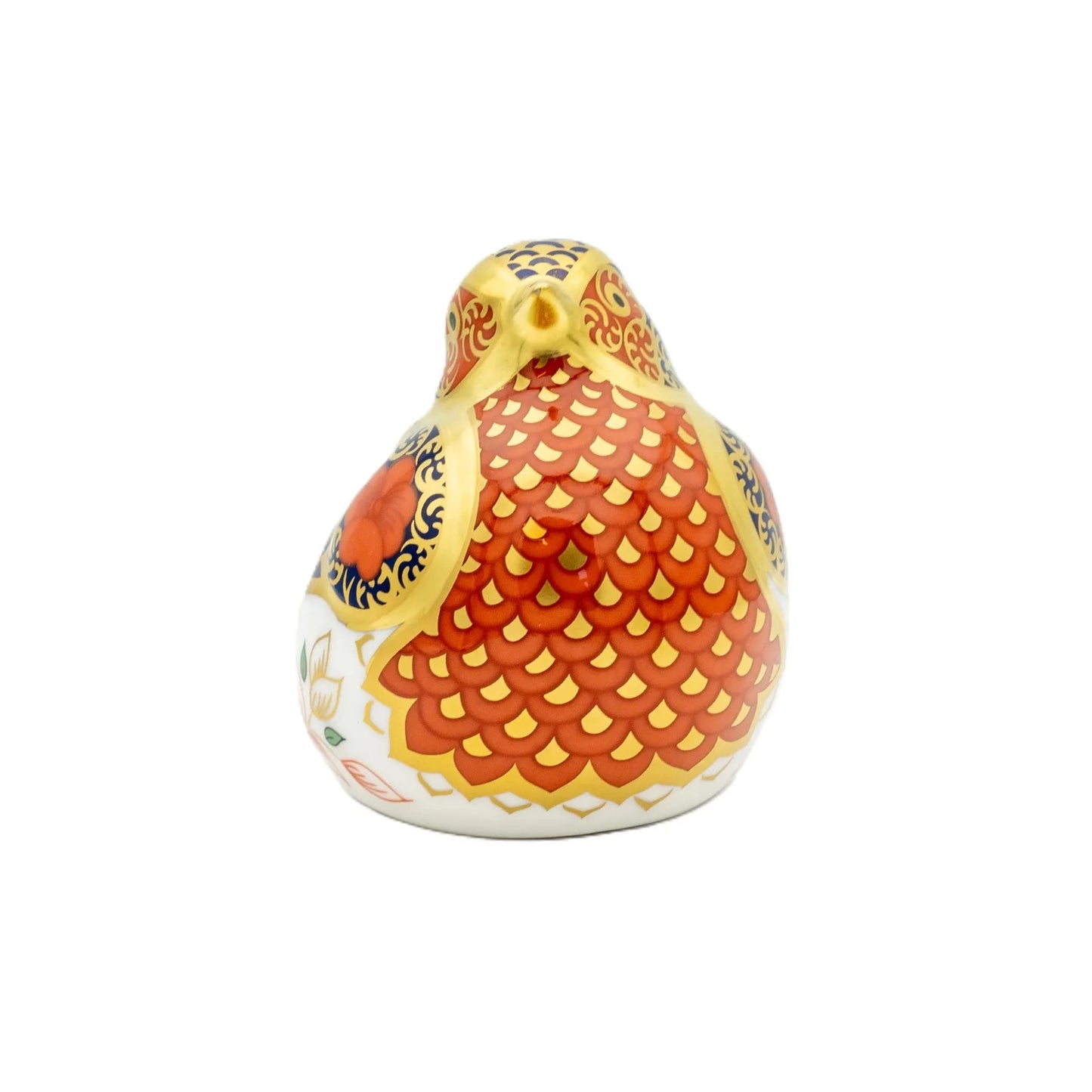 Open lattice designs and striking geometric shapes, combined with intricate floral-inspired motifs, illustrate the exquisite feather detailing on the Robin. Peonies, synonymous with the original Imari design, adorn the wings and body of the bird, adding a delicate touch to its design. The use of 22 carat gold brings an opulent finish, making this paperweight a true work of art.